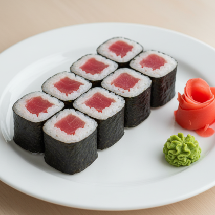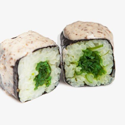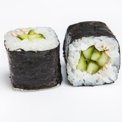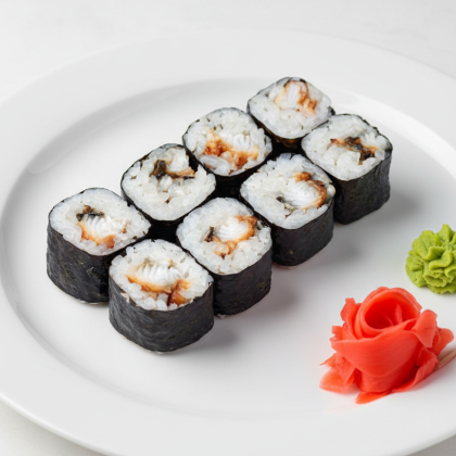 Листья нори, рис, креветка крабовое мясо. Не забудьте заказать имбирь, соевый соус и васаби ; )